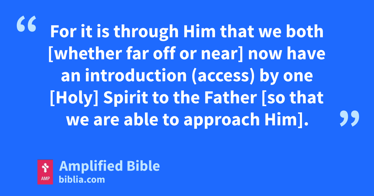 For it is through Him that we both [whether far off or near] now have an introduction (access) by one [Holy] Spirit to the Father [so that we are able to approach Him].
