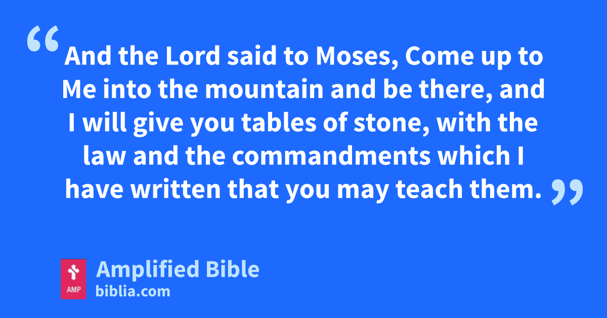 And the Lord said to Moses, Come up to Me into the mountain and be there, and I will give you tables of stone, with the law and the commandments which I have written that you may teach them.