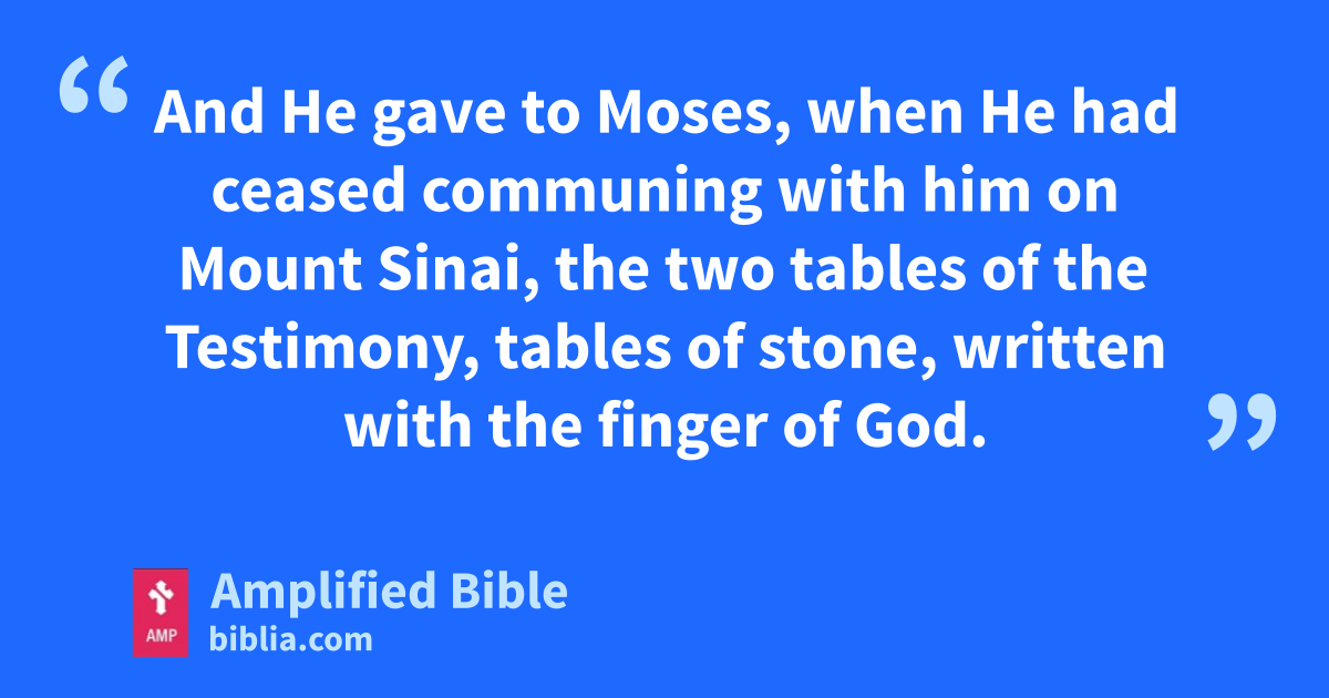 And He gave to Moses, when He had ceased communing with him on Mount Sinai, the two tables of the Testimony, tables of stone, written with the finger of God.