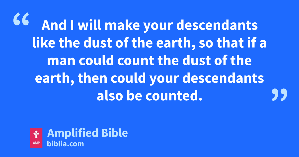 And I will make your descendants like the dust of the earth, so that if a man could count the dust of the earth, then could your descendants also be counted.
