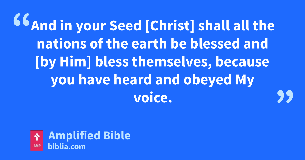 And in your Seed [Christ] shall all the nations of the earth be blessed and [by Him] bless themselves, because you have heard and obeyed My voice.
