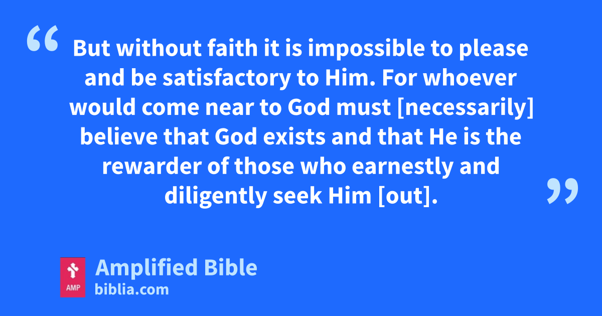 But without faith it is impossible to please and be satisfactory to Him. For whoever would come near to God must [necessarily] believe that God exists and that He is the rewarder of those who earnestly and diligently seek Him [out].