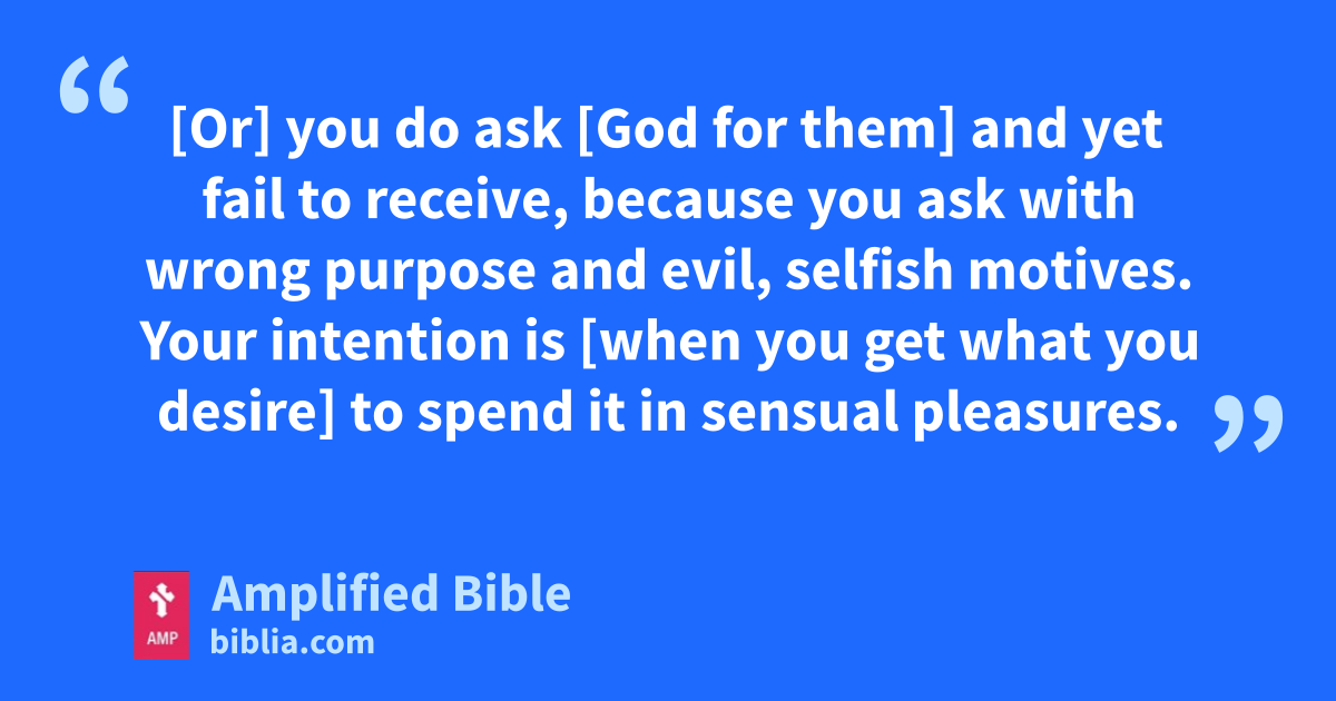 [Or] you do ask [God for them] and yet fail to receive, because you ask with wrong purpose and evil, selfish motives. Your intention is [when you get what you desire] to spend it in sensual pleasures.