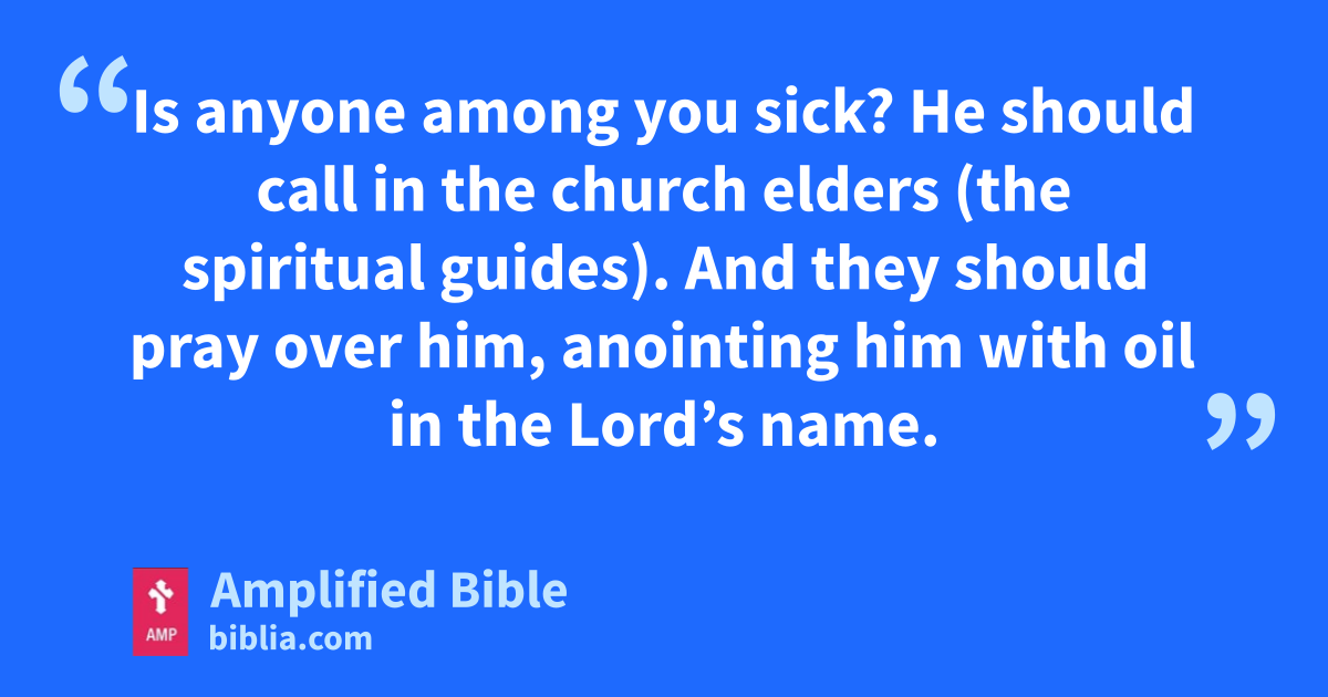 Is anyone among you sick? He should call in the church elders (the spiritual guides). And they should pray over him, anointing him with oil in the Lord’s name.