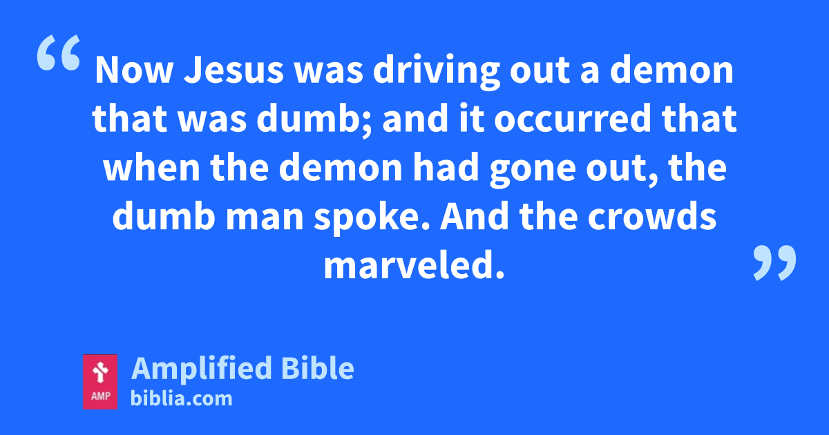 Now Jesus was driving out a demon that was dumb; and it occurred that when the demon had gone out, the dumb man spoke. And the crowds marveled.