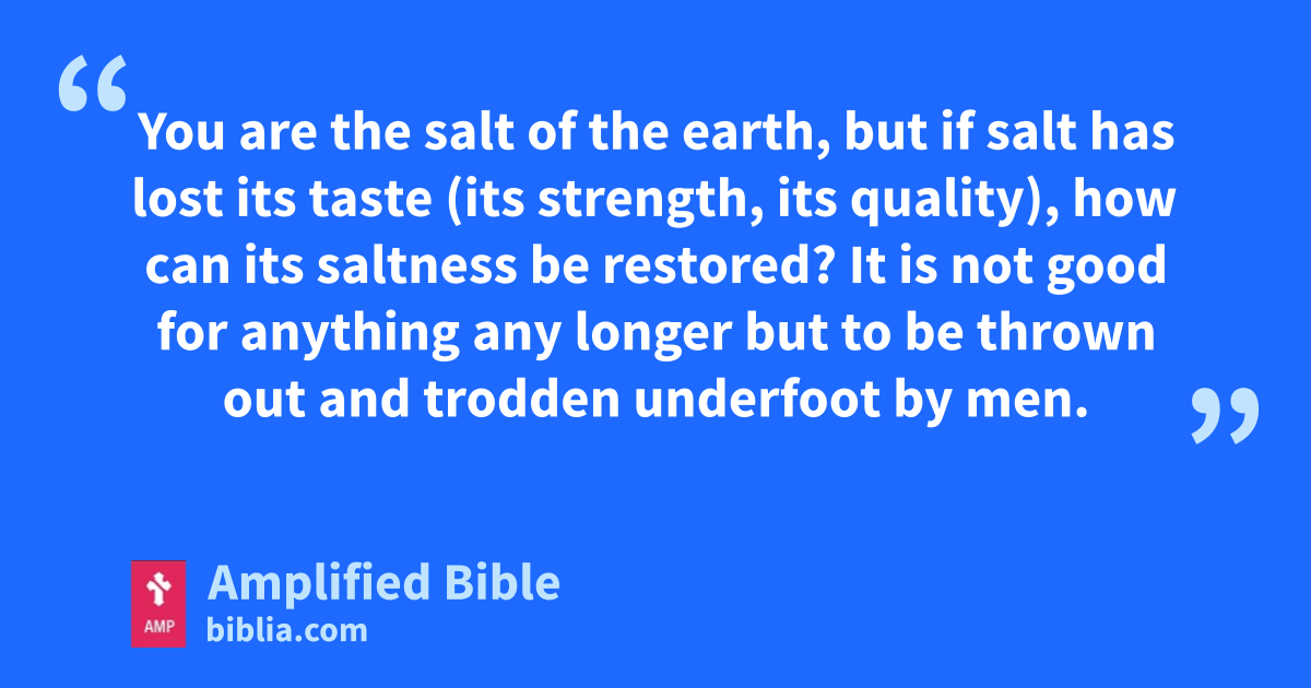 You are the salt of the earth, but if salt has lost its taste (its strength, its quality), how can its saltness be restored? It is not good for anything any longer but to be thrown out and trodden underfoot by men.
