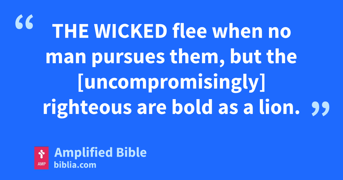 THE WICKED flee when no man pursues them, but the [uncompromisingly] righteous are bold as a lion.