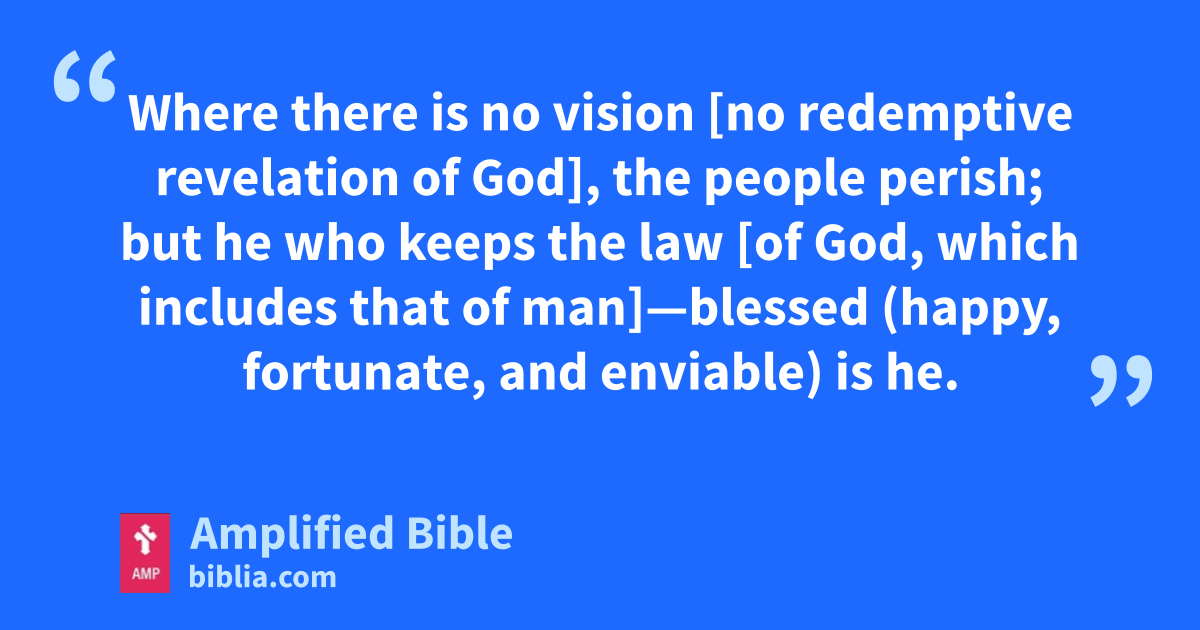 Where there is no vision [no redemptive revelation of God], the people perish; but he who keeps the law [of God, which includes that of man]—blessed (happy, fortunate, and enviable) is he.