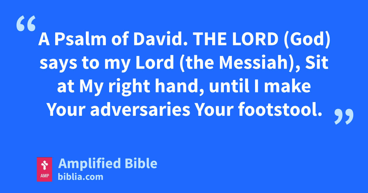 A Psalm of David. THE LORD (God) says to my Lord (the Messiah), Sit at My right hand, until I make Your adversaries Your footstool.