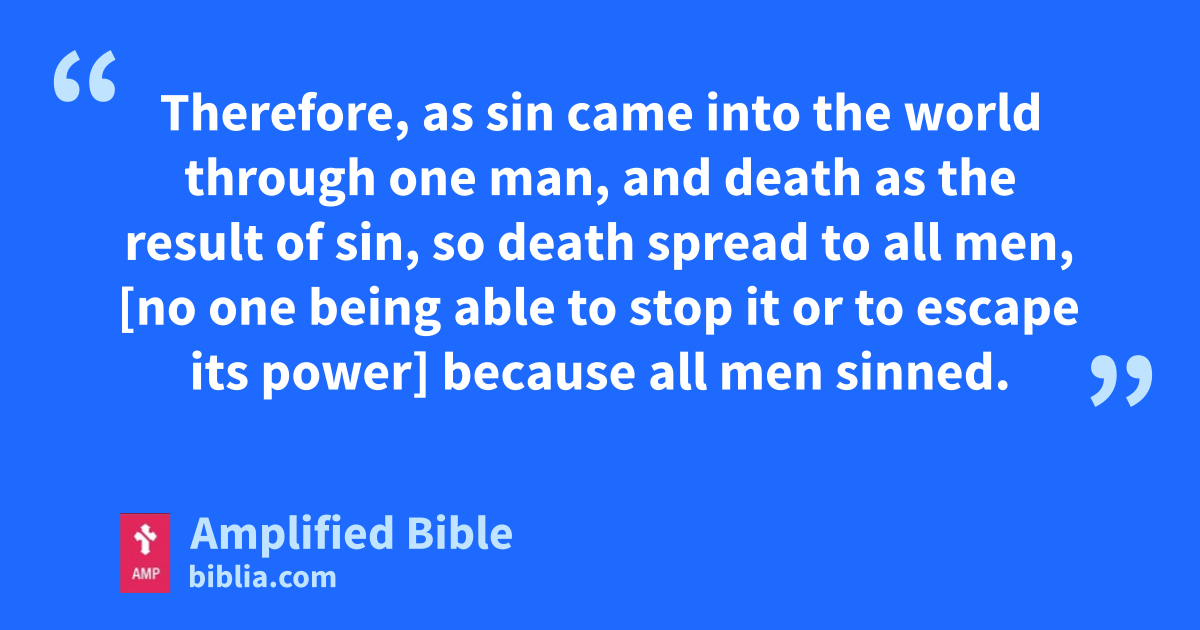 Therefore, as sin came into the world through one man, and death as the result of sin, so death spread to all men, [no one being able to stop it or to escape its power] because all men sinned.