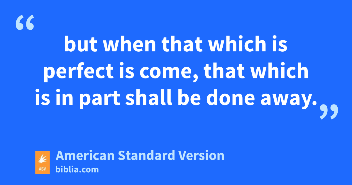 13 If I speak with the tongues of men and of angels, but have not love, I am become sounding brass, or a clanging cymbal. 2And if I have the gift of prophecy, and know all mysteries and all knowledge; and if I have all faith, so as to remove mountains, but have not love, I am nothing. 3And if I bestow all my goods to feed the poor, and if I give my body to be burned, but have not love, it profiteth me nothing. 4Love suffereth long, and is kind; love envieth not; love vaunteth not itself, is not puffed up, 5doth not behave itself unseemly, seeketh not its own, is not provoked, taketh not account of evil; 6rejoiceth not in unrighteousness, but rejoiceth with the truth; 7beareth all things, believeth all things, hopeth all things, endureth all things. 8Love never faileth: but whether there be prophecies, they shall be done away; whether there be tongues, they shall cease; whether there be knowledge, it shall be done away. 9For we know in part, and we prophesy in part; 10but when that which is perfect is come, that which is in part shall be done away. 11When I was a child, I spake as a child, I felt as a child, I thought as a child: now that I am become a man, I have put away childish things. 12For now we see in a mirror, darkly; but then face to face: now I know in part; but then shall I know fully even as also I was fully known. 13But now abideth faith, hope, love, these three; and the greatest of these is love.