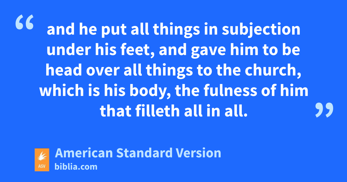 15For this cause I also, having heard of the faith in the Lord Jesus which is among you, and the love which ye show toward all the saints, 16cease not to give thanks for you, making mention of you in my prayers; 17that the God of our Lord Jesus Christ, the Father of glory, may give unto you a spirit of wisdom and revelation in the knowledge of him; 18having the eyes of your heart enlightened, that ye may know what is the hope of his calling, what the riches of the glory of his inheritance in the saints, 19and what the exceeding greatness of his power to us-ward who believe, according to that working of the strength of his might 20which he wrought in Christ, when he raised him from the dead, and made him to sit at his right hand in the heavenly places, 21far above all rule, and authority, and power, and dominion, and every name that is named, not only in this world, but also in that which is to come: 22and he put all things in subjection under his feet, and gave him to be head over all things to the church, 23which is his body, the fulness of him that filleth all in all.