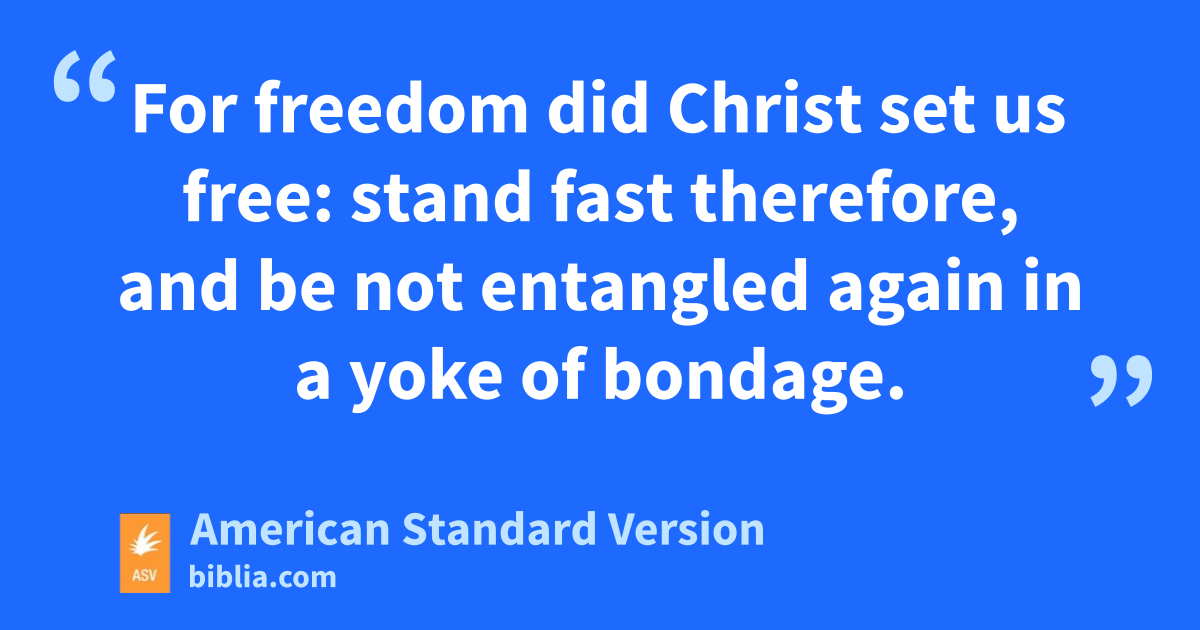 5 For freedom did Christ set us free: stand fast therefore, and be not entangled again in a yoke of bondage.