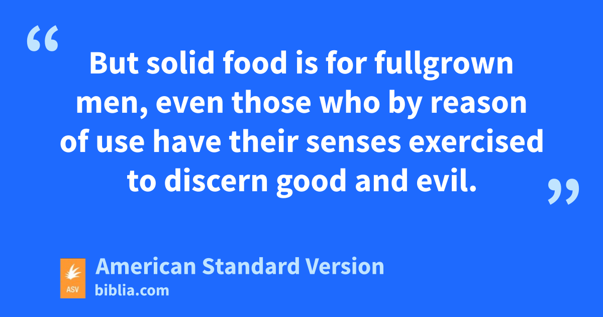 11Of whom we have many things to say, and hard of interpretation, seeing ye are become dull of hearing. 12For when by reason of the time ye ought to be teachers, ye have need again that some one teach you the rudiments of the first principles of the oracles of God; and are become such as have need of milk, and not of solid food. 13For every one that partaketh of milk is without experience of the word of righteousness; for he is a babe. 14But solid food is for fullgrown men, even those who by reason of use have their senses exercised to discern good and evil.