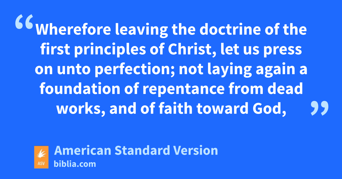6 Wherefore leaving the doctrine of the first principles of Christ, let us press on unto perfection; not laying again a foundation of repentance from dead works, and of faith toward God, 2of the teaching of baptisms, and of laying on of hands, and of resurrection of the dead, and of eternal judgment. 3And this will we do, if God permit. 4For as touching those who were once enlightened and tasted of the heavenly gift, and were made partakers of the Holy Spirit, 5and tasted the good word of God, and the powers of the age to come, 6and then fell away, it is impossible to renew them again unto repentance; seeing they crucify to themselves the Son of God afresh, and put him to an open shame. 7For the land which hath drunk the rain that cometh oft upon it, and bringeth forth herbs meet for them for whose sake it is also tilled, receiveth blessing from God: 8but if it beareth thorns and thistles, it is rejected and nigh unto a curse; whose end is to be burned.