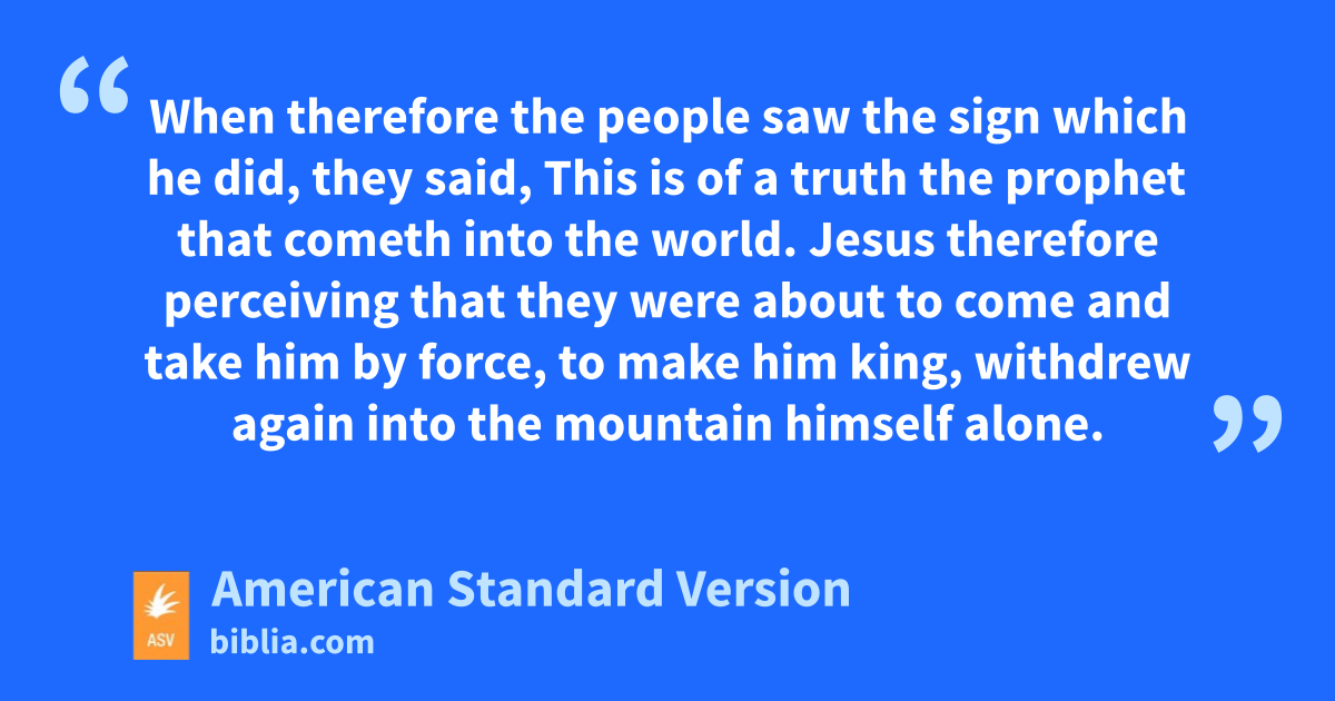 15Jesus therefore perceiving that they were about to come and take him by force, to make him king, withdrew again into the mountain himself alone.