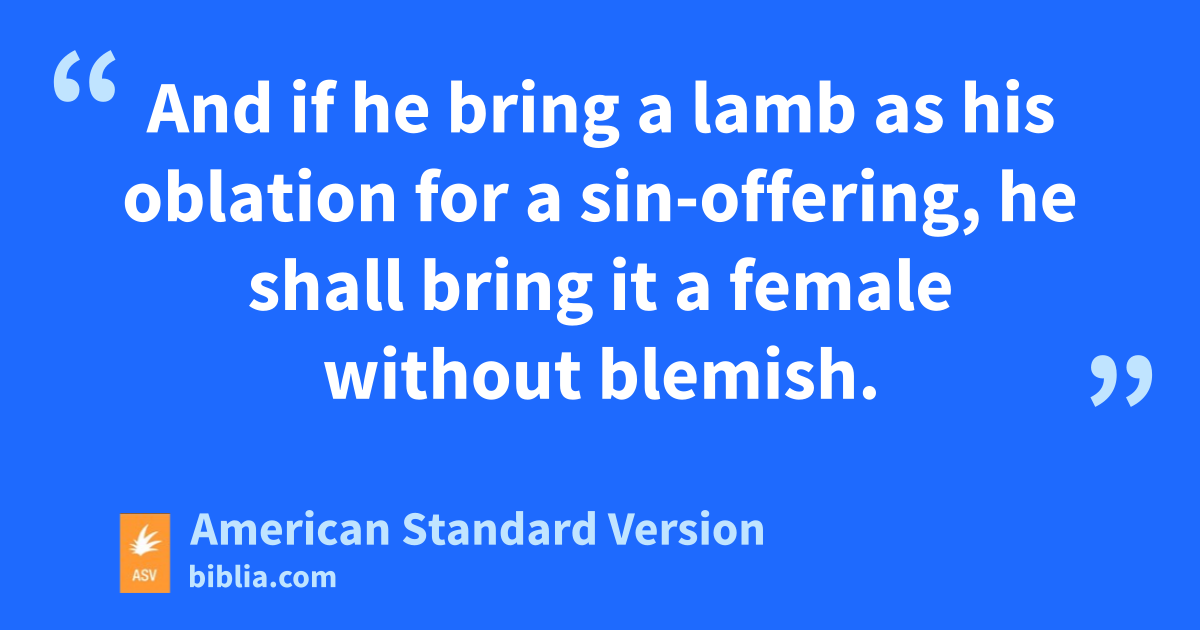 32And if he bring a lamb as his oblation for a sin-offering, he shall bring it a female without blemish. 33And he shall lay his hand upon the head of the sin-offering, and kill it for a sin-offering in the place where they kill the burnt-offering. 34And the priest shall take of the blood of the sin-offering with his finger, and put it upon the horns of the altar of burnt-offering; and all the blood thereof shall he pour out at the base of the altar. 35And all the fat thereof shall he take away, as the fat of the lamb is taken away from the sacrifice of peace-offerings; and the priest shall burn them on the altar, upon the offerings of Jehovah made by fire; and the priest shall make atonement for him as touching his sin that he hath sinned, and he shall be forgiven.