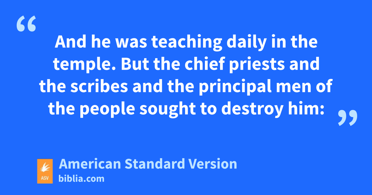 47And he was teaching daily in the temple. But the chief priests and the scribes and the principal men of the people sought to destroy him: 48and they could not find what they might do; for the people all hung upon him, listening.