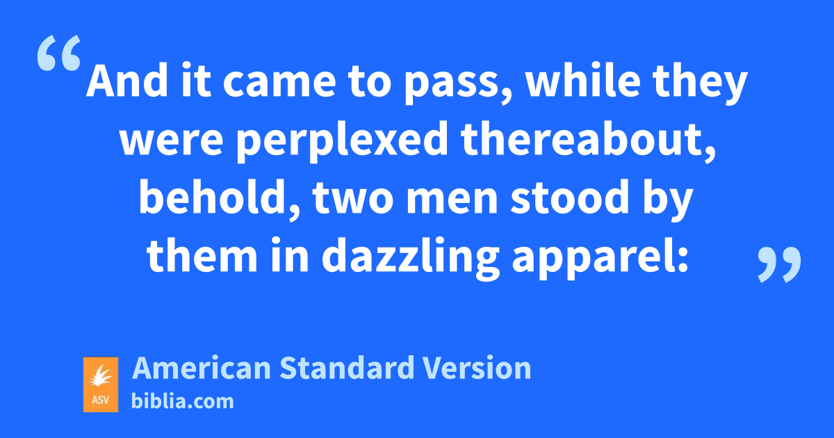 24 But on the first day of the week, at early dawn, they came unto the tomb, bringing the spices which they had prepared. 2And they found the stone rolled away from the tomb. 3And they entered in, and found not the body of the Lord Jesus. 4And it came to pass, while they were perplexed thereabout, behold, two men stood by them in dazzling apparel: 5and as they were affrighted and bowed down their faces to the earth, they said unto them, Why seek ye the living among the dead? 6He is not here, but is risen: remember how he spake unto you when he was yet in Galilee, 7saying that the Son of man must be delivered up into the hands of sinful men, and be crucified, and the third day rise again. 8And they remembered his words, 9and returned from the tomb, and told all these things to the eleven, and to all the rest. 10Now they were Mary Magdalene, and Joanna, and Mary the mother of James: and the other women with them told these things unto the apostles. 11And these words appeared in their sight as idle talk; and they disbelieved them. 12But Peter arose, and ran unto the tomb; and stooping and looking in, he seeth the linen cloths by themselves; and he departed to his home, wondering at that which was come to pass.