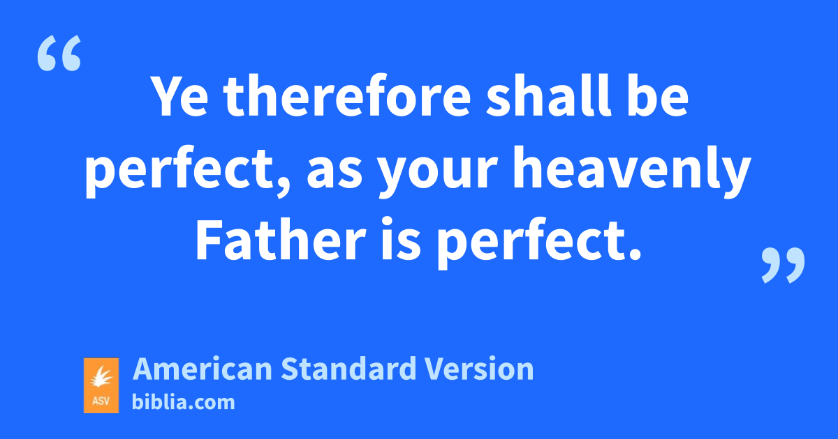 43Ye have heard that it was said, Thou shalt love thy neighbor, and hate thine enemy: 44but I say unto you, Love your enemies, and pray for them that persecute you; 45that ye may be sons of your Father who is in heaven: for he maketh his sun to rise on the evil and the good, and sendeth rain on the just and the unjust. 46For if ye love them that love you, what reward have ye? do not even the publicans the same? 47And if ye salute your brethren only, what do ye more than others? do not even the Gentiles the same? 48Ye therefore shall be perfect, as your heavenly Father is perfect.
