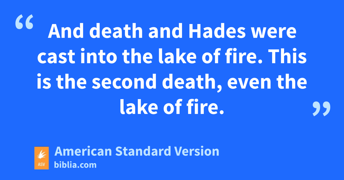 11And I saw a great white throne, and him that sat upon it, from whose face the earth and the heaven fled away; and there was found no place for them. 12And I saw the dead, the great and the small, standing before the throne; and books were opened: and another book was opened, which is the book of life: and the dead were judged out of the things which were written in the books, according to their works. 13And the sea gave up the dead that were in it; and death and Hades gave up the dead that were in them: and they were judged every man according to their works. 14And death and Hades were cast into the lake of fire. This is the second death, even the lake of fire. 15And if any was not found written in the book of life, he was cast into the lake of fire.