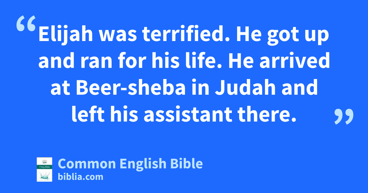 Elijah was terrified. He got up and ran for his life. He arrived at Beer-sheba in Judah and left his assistant there.