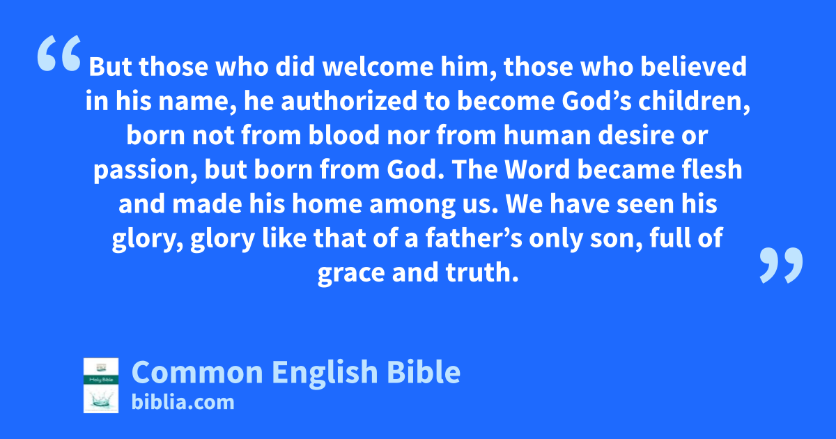 But those who did welcome him, those who believed in his name, he authorized to become God’s children, born not from blood nor from human desire or passion, but born from God. The Word became flesh and made his home among us. We have seen his glory, glory like that of a father’s only son, full of grace and truth.