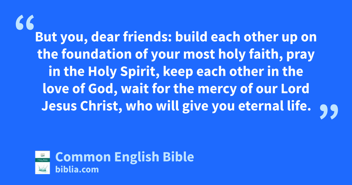 But you, dear friends: build each other up on the foundation of your most holy faith, pray in the Holy Spirit, keep each other in the love of God, wait for the mercy of our Lord Jesus Christ, who will give you eternal life.