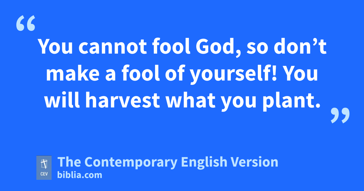 You cannot fool God, so don’t make a fool of yourself! You will harvest what you plant.