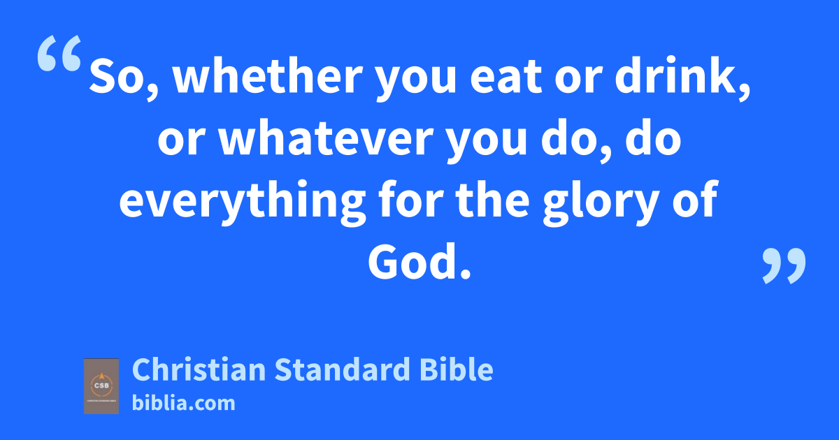 31 So, whether you eat or drink, or whatever you do, do everything for the glory of God.ar 32 Give no offenseas to Jews or Greeks or the church of God, 33 just as I also try to please everyone in everything, not seeking my own benefit, but the benefit of many,a so that they may be saved. 11 Imitate me, as I also imitate Christ.b