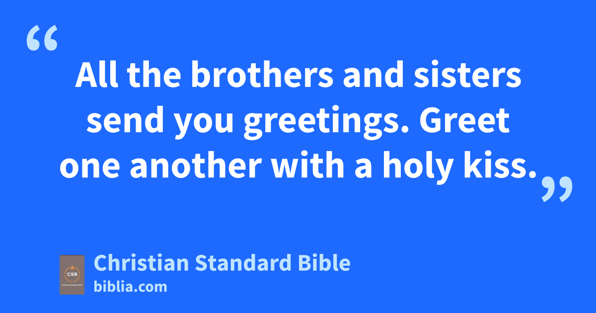 19 The churches of Asiae send you greetings.f Aquila and Priscillag send you greetings warmly in the Lord, along with the church that meets in their home.h 20 All the brothers and sisters send you greetings. Greet one another with a holy kiss.i