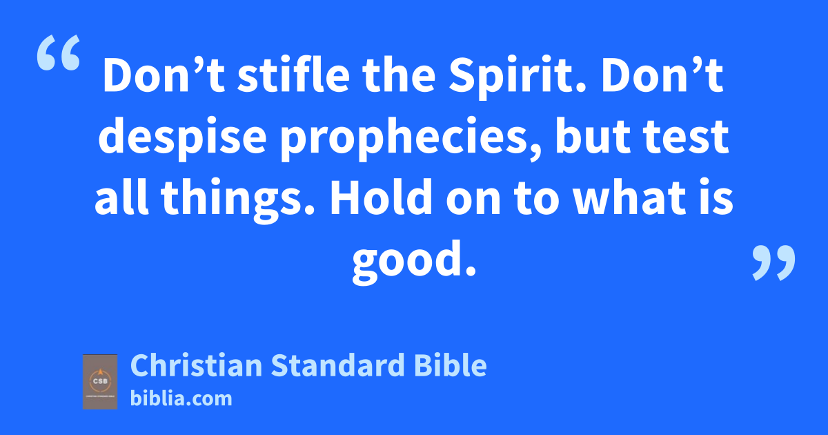 12 Now we ask you, brothers and sisters, to give recognitiont to those who labor among you and lead youA in the Lord and admonish you, 13 and to regard them very highly in love because of their work. Be at peaceu among yourselves. 14 And we exhort you, brothers and sisters:v warn those who are idle,B comfort the discouraged, help the weak, be patientw with everyone. 15 See to it that no one repays evil for evilx to anyone,y but always pursue what is good for one another and for all.z 16 Rejoiceaa always, 17 pray constantly, 18 give thanks in everything; for this is God’s willab for you in Christ Jesus. 19 Don’t stifle the Spirit. 20 Don’t despise prophecies, 21 but test all things.ac Hold on to what is good. 22 Stay awayad from every kind of evil.