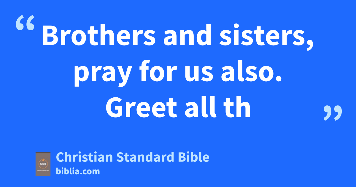 23 Now may the God of peaceae himself sanctify you completely. And may your whole spirit,af soul, and body be kept sound and blameless at the comingag of our Lordah Jesus Christ.ai 24 He who callsaj youak is faithful; he will do it. 25 Brothers and sisters, pray for us also. 26 Greet all the brothers and sisters with a holy kiss. 27 I charge you by the Lord that this letter be read to all the brothers and sisters.al 28 The grace of our Lord Jesus Christ be with you.