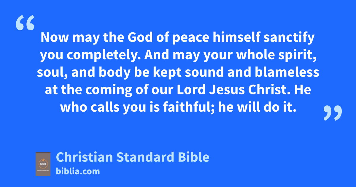 23 Now may the God of peaceae himself sanctify you completely. And may your whole spirit,af soul, and body be kept sound and blameless at the comingag of our Lordah Jesus Christ.ai 24 He who callsaj youak is faithful; he will do it. 25 Brothers and sisters, pray for us also. 26 Greet all the brothers and sisters with a holy kiss. 27 I charge you by the Lord that this letter be read to all the brothers and sisters.al 28 The grace of our Lord Jesus Christ be with you.