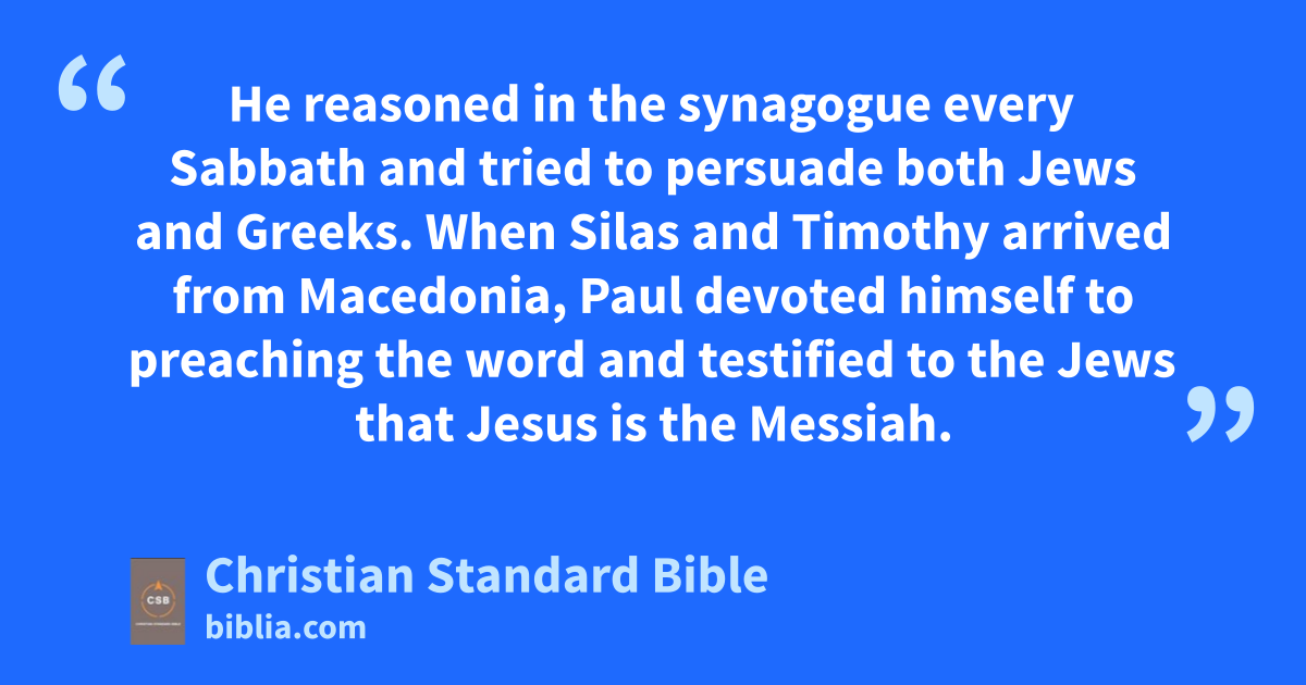 18 After this, heA left Athens and went to Corinth,q 2 where he found a Jew named Aquila,r a native of Pontus, who had recently come from Italy with his wife Priscilla because Claudius had ordered all the Jews to leave Rome. Paul came to them, 3 and since they were of the same occupation, tentmakers by trade, he stayed with them and worked.s 4 He reasoned in the synagogue every Sabbath and tried to persuade both Jews and Greeks.t
