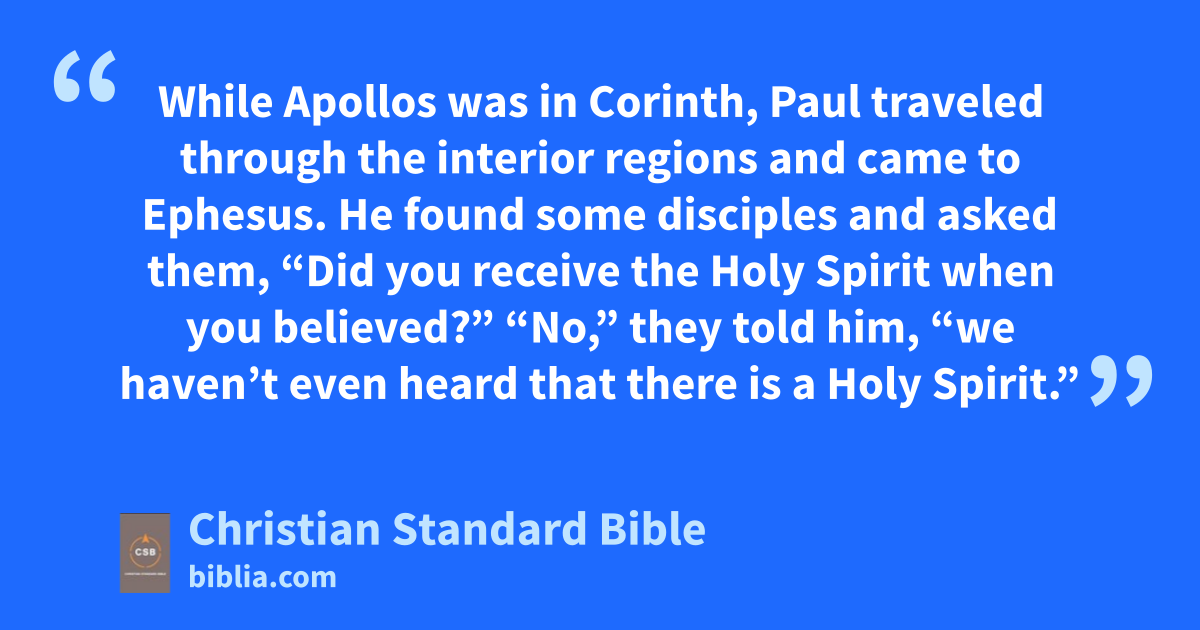 19 While Apollos was in Corinth, Paul traveled through the interior regions and came to Ephesus. He found some disciplesn 2 and asked them, “Did you receive the Holy Spirit when you believed?”o