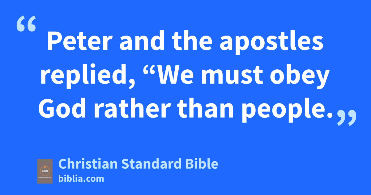 29 Peter and the apostles replied, “We must obey God rather than people. 30 The God of our ancestors raised up Jesus,e whom you had murdered by hanging him on a tree.f 31 God exalted this man to his right hand as ruler and Savior, to give repentance to Israel and forgiveness of sins.g 32 We are witnesses of these things, and so is the Holy Spirith whom God has given to those who obey him.”