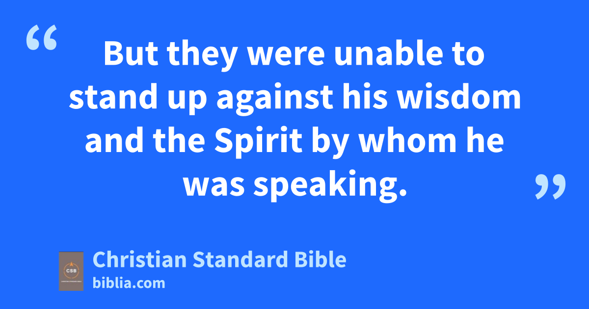 8 Now Stephen, full of grace and power, was performing great wonders and signs among the people. 9 Opposition arose, however, from some members of the Freedmen’s Synagogue, composed of both Cyrenians and Alexandrians, and some from Cilicia and Asia, and they began to argue with Stephen. 10 But they were unable to stand up against his wisdom and the Spirit by whom he was speaking.