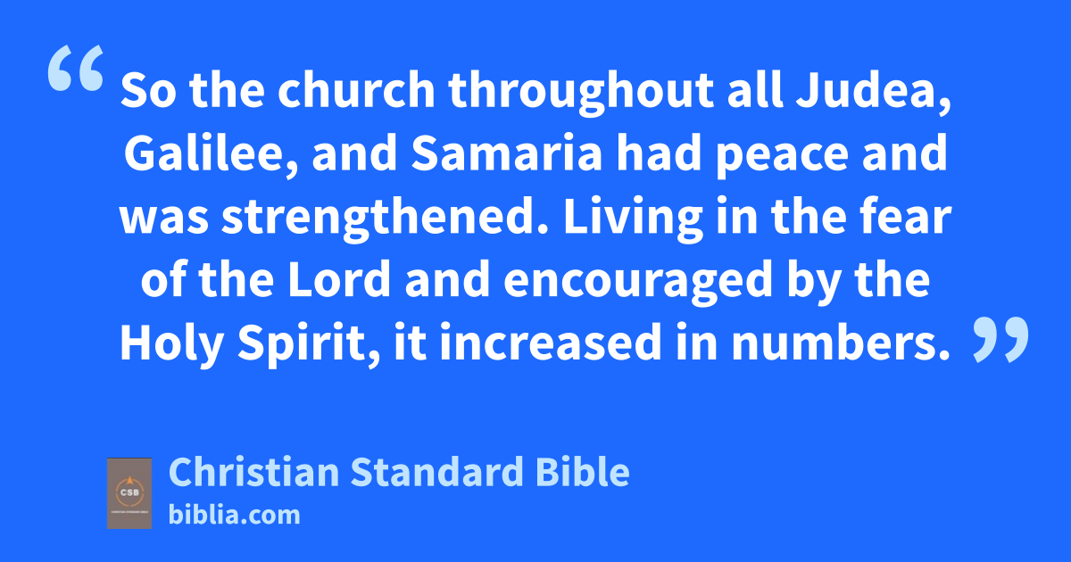 31 So the churche throughout all Judea, Galilee, and Samaria had peace and was strengthened. Living in the fear of the Lord and encouraged by the Holy Spirit, it increased in numbers.