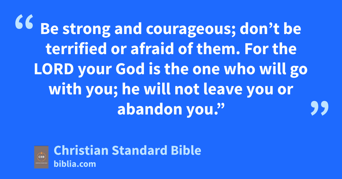 7 Moses then summoned Joshua and said to him in the sight of all Israel, “Be strong and courageous, for you will go withC this people into the land the Lord swore to give to their ancestors.q You will enable them to take possession of it. 8 The Lord is the one who will go before you.r He will be with you; he will not leave you or abandon you.s Do not be afraid or discouraged.”