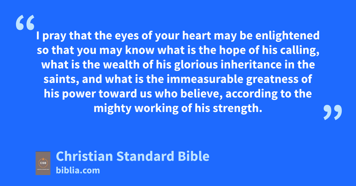 15 This is why, since I heard about your faith in the Lord Jesus and your love for all the saints, 16 I never stop giving thanks for you as I remember you in my prayers. 17 I pray that the God of our Lord Jesus Christ, the glorious Father,G would give you the SpiritH,v of wisdom and revelationw in the knowledge of him. 18 I pray that the eyes of your heart may be enlightened so that you may know what is the hopex of his calling,y what is the wealth of his glorious inheritance in the saints, 19 and what is the immeasurable greatness of his powerz toward us who believe, according to the mighty working of his strength.