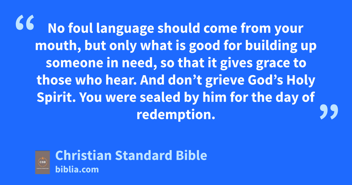 25 Therefore, putting awayac lying, speak the truth, each one to his neighbor,H,ad because we are members of one another. 26 Be angry and do not sin.I,ae Don’t let the sun go down on your anger, 27 and don’t give the devil an opportunity. 28 Let the thief no longer steal. Instead, he is to do honest work with his own hands, so that he has something to shareaf with anyone in need. 29 No foul language should come from your mouth, but only what is good for building up someone in need,J so that it gives grace to those who hear. 30 And don’t grieve God’s Holy Spirit.ag You were sealed by himK for the day of redemption.ah 31 Let all bitterness, anger and wrath, shouting and slander be removed from you, along with all malice. 32 And be kindai and compassionateaj to one another, forgivingak one another, just as God also forgave youL in Christ.