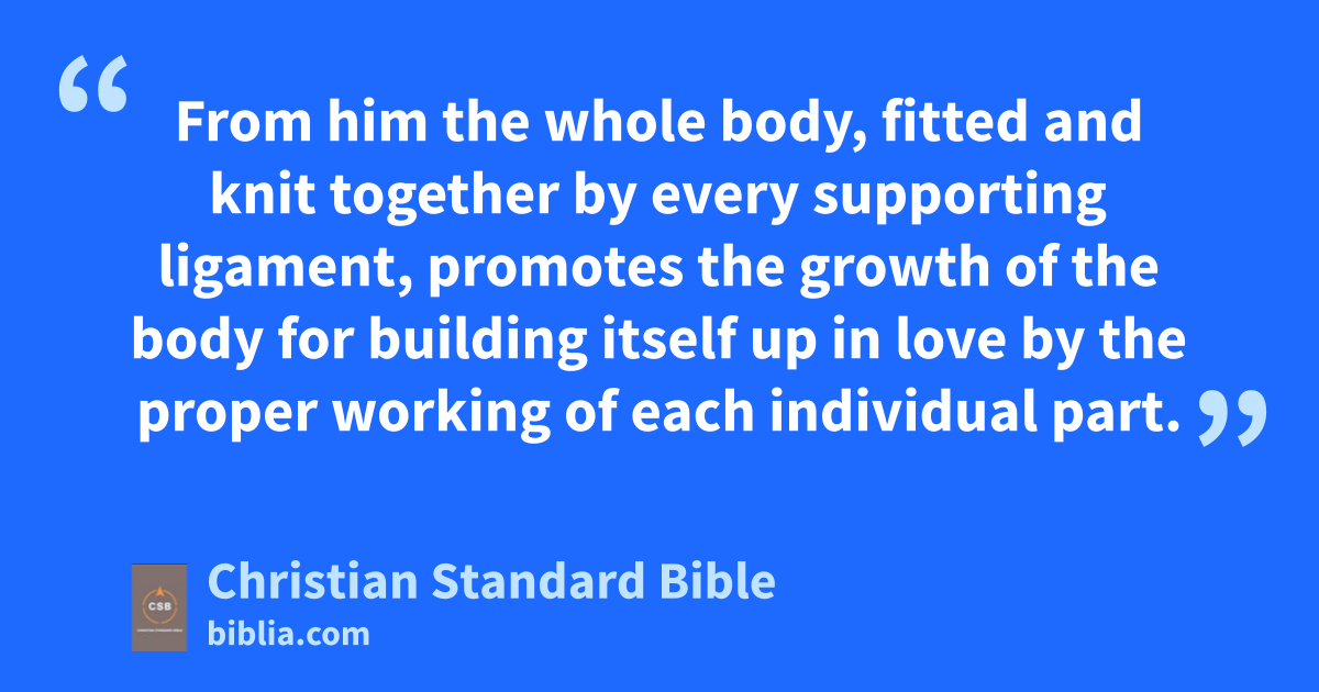 9 But what does “he ascended” mean except that heA also descended to the lower parts of the earth?B,j 10 The one who descended is also the one who ascended far above all the heavens,k to fill all things.l 11 And he himself gave some to be apostles, some prophets, some evangelists, some pastors and teachers, 12 to equip the saints for the work of ministry, to build up the body of Christ,m 13 until we all reach unity in the faith and in the knowledge of God’s Son,n growing into maturity with a statureo measured by Christ’s fullness. 14 Then we will no longer be little children, tossed by the waves and blown around by every wind of teaching,p by human cunning with cleverness in the techniques of deceit. 15 But speaking the truth in love, let us grow in every way into him who is the headq—Christ. 16 From him the whole body, fitted and knit togetherr by every supporting ligament, promotes the growths of the body for building itself up in love by the proper working of each individual part.