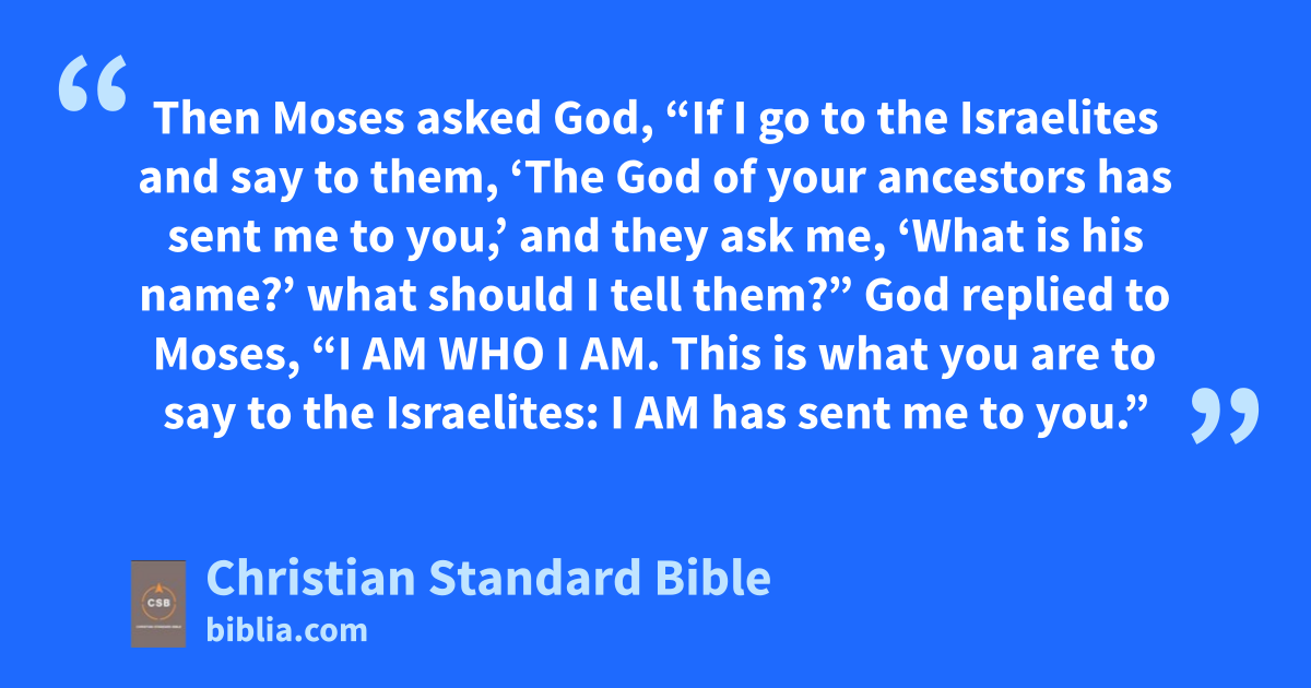 14 God replied to Moses, “I AM WHO I AM.E,u This is what you are to say to the Israelites: I AM has sent me to you.” 15 God also said to Moses, “Say this to the Israelites: The Lord, the God of your ancestors, the God of Abraham, the God of Isaac, and the God of Jacob, has sent me to you. This is my name forever;v this is how I am to be remembered in every generation.