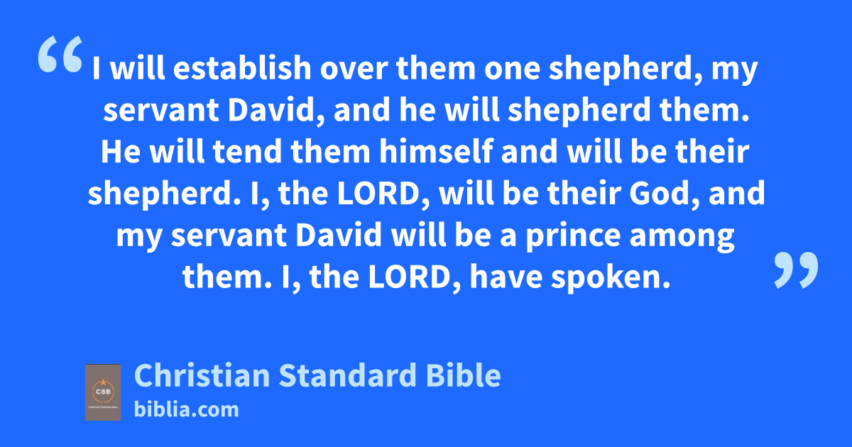 20 “ ‘Therefore, this is what the Lord God says to them: See, I myself will judge between the fat sheep and the lean sheep. 21 Since you have pushed with flank and shoulder and butted all the weak ones with your horns until you scattered them all over, 22 I will save my flock. They will no longer be prey, and I will judge between one sheep and another. 23 I will establish over them one shepherd, my servant David, and he will shepherd them. He will tend them himself and will be their shepherd.n 24 I, the Lord, will be their God, and my servant Davido will be a prince among them. I, the Lord, have spoken.