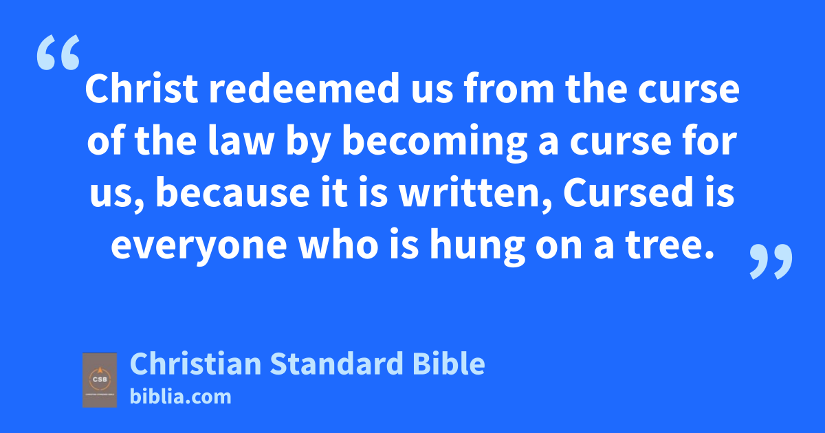 10 For all who rely on the works of the law are under a curse,ak because it is written,al Everyone who does not do everything written in the book of the law is cursed.K,am 11 Now it is clear that no one is justified before God by the law, because the righteous will livean by faith.L,ao 12 But the law is not based on faith; instead, the one who does these things will live by them.M,ap 13 Christ redeemed us from the curse of the law by becoming a curse for us,aq because it is written, Cursed is everyone who is hung on a tree.N,ar 14 The purpose was that the blessing of Abraham would come to the Gentiles by Christ Jesus, so that we could receive the promised Spirit through faith.as