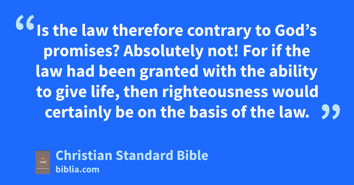 19 Why, then, was the law given?a It was added for the sake of transgressionsA until the Seed to whom the promise was made would come. The law was put into effect through angelsb by means of a mediator.c 20 Now a mediator is not just for one person alone, but God is one.d 21 Is the law therefore contrary to God’s promises? Absolutely not! For if the law had been granted with the ability to give life, then righteousness would certainly be on the basis of the law. 22 But the Scripture imprisoned everything under sin’s power,B,e so that the promise might be given on the basis of faithf in Jesus Christ to those who believe.g 23 Before this faithh came, we were confined under the law, imprisoned until the coming faith was revealed.i 24 The law, then, was our guardian until Christ,j so that we could be justified by faith. 25 But since that faithk has come, we are no longer under a guardian, 26 for through faith you are all sons of God in Christ Jesus.