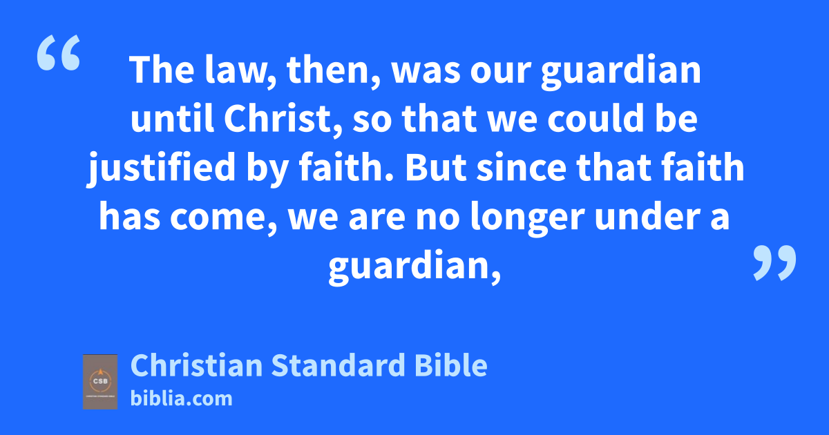 19 Why, then, was the law given?a It was added for the sake of transgressionsA until the Seed to whom the promise was made would come. The law was put into effect through angelsb by means of a mediator.c 20 Now a mediator is not just for one person alone, but God is one.d 21 Is the law therefore contrary to God’s promises? Absolutely not! For if the law had been granted with the ability to give life, then righteousness would certainly be on the basis of the law. 22 But the Scripture imprisoned everything under sin’s power,B,e so that the promise might be given on the basis of faithf in Jesus Christ to those who believe.g 23 Before this faithh came, we were confined under the law, imprisoned until the coming faith was revealed.i 24 The law, then, was our guardian until Christ,j so that we could be justified by faith. 25 But since that faithk has come, we are no longer under a guardian, 26 for through faith you are all sons of God in Christ Jesus.