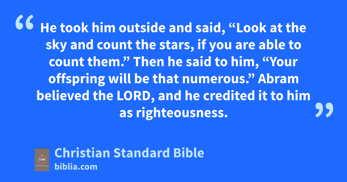 4 Now the word of the Lord came to him: “This one will not be your heir; instead, one who comes from your own bodyC will be your heir.” 5 He took him outside and said, “Look at the sky and count the stars, if you are able to count them.” Then he said to him, “Your offspring will be that numerous.”d