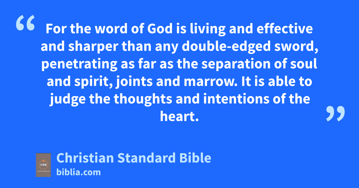 12 For the word of God is living and effectiveg and sharper than any double-edged sword,h penetrating as far as the separation of soul and spirit, joints and marrow. It is able to judge the thoughts and intentions of the heart.i 13 No creature is hidden from him, but all things are naked and exposed to the eyes of him to whomj we must give an account.